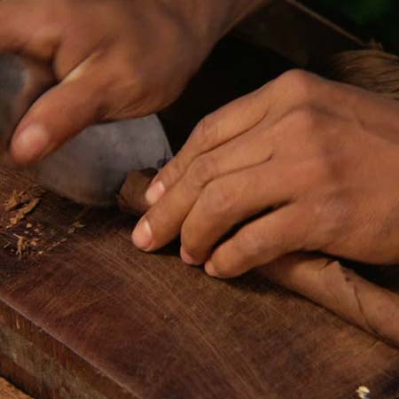 Une équipe à l'extèrieur, pour la fabrication de cigarillos aromatisés naturellement à la vanille. Les non fumeurs de cigares adorent pour le côté facile et festif de cette fumée sucrée et les dégusterons certainement à l'occasion, en souvenir des saveurs de notre Caraibe.
